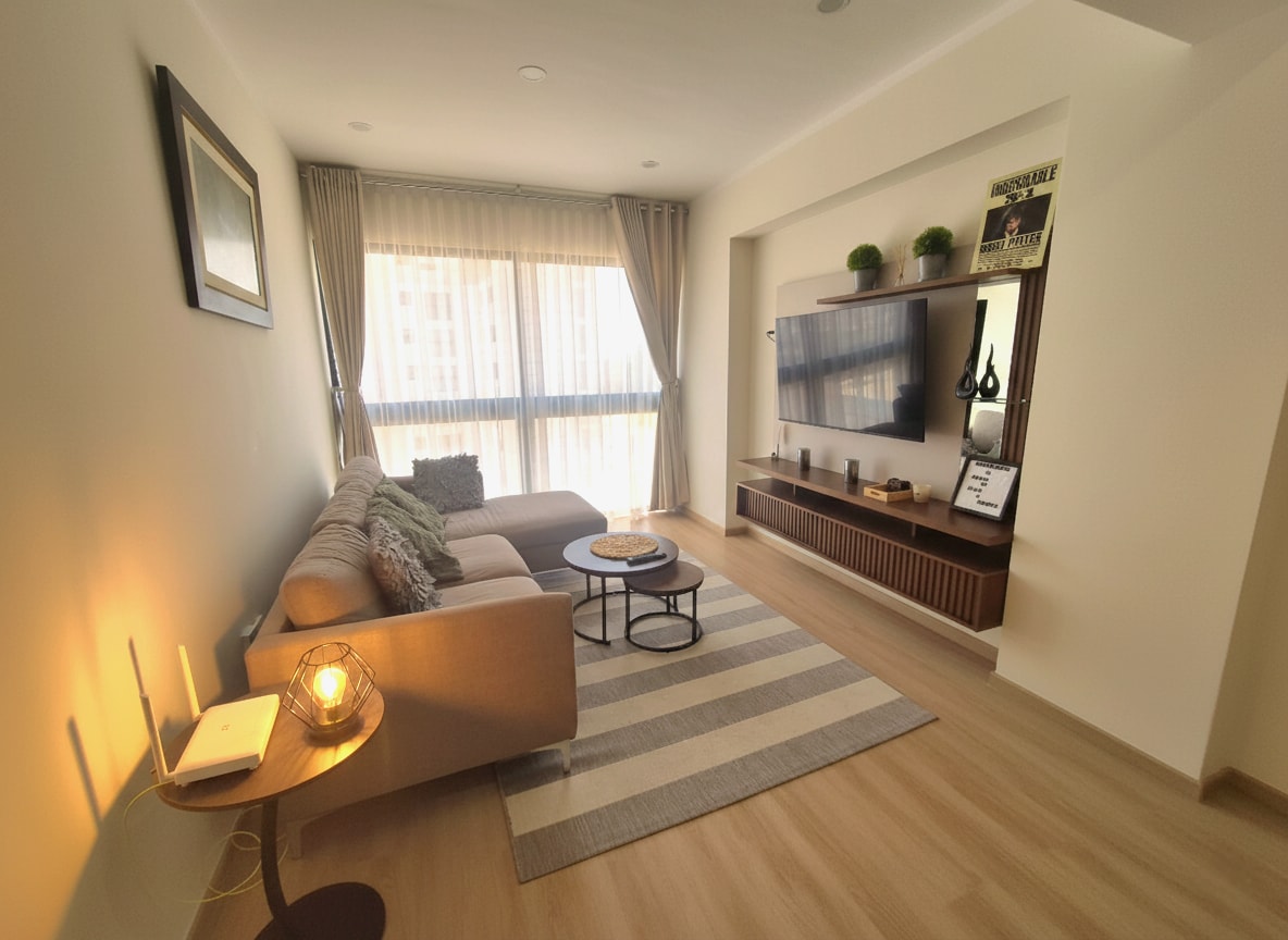 ✅ 2 habitaciones: principal con cama doble y mural artístico, secundaria con cama de 1.5 plazas y vista despejada. ✅ Sala moderna y luminosa: TV, sofá y murales que inspiran relajación. ✅ Comedor para 4 con mural floral. ✅ Cocina equipada con refrigeradora, microondas, cafetera, hervidor y utensilios. ✅ Baño estilo spa con ducha de vidrio, luz LED y detalles en madera. ✅ Ventanales amplios de luz natural. ✅ Ubicación estratégica: a minutos del centro, cerca de restaurantes, cafés y tiendas.