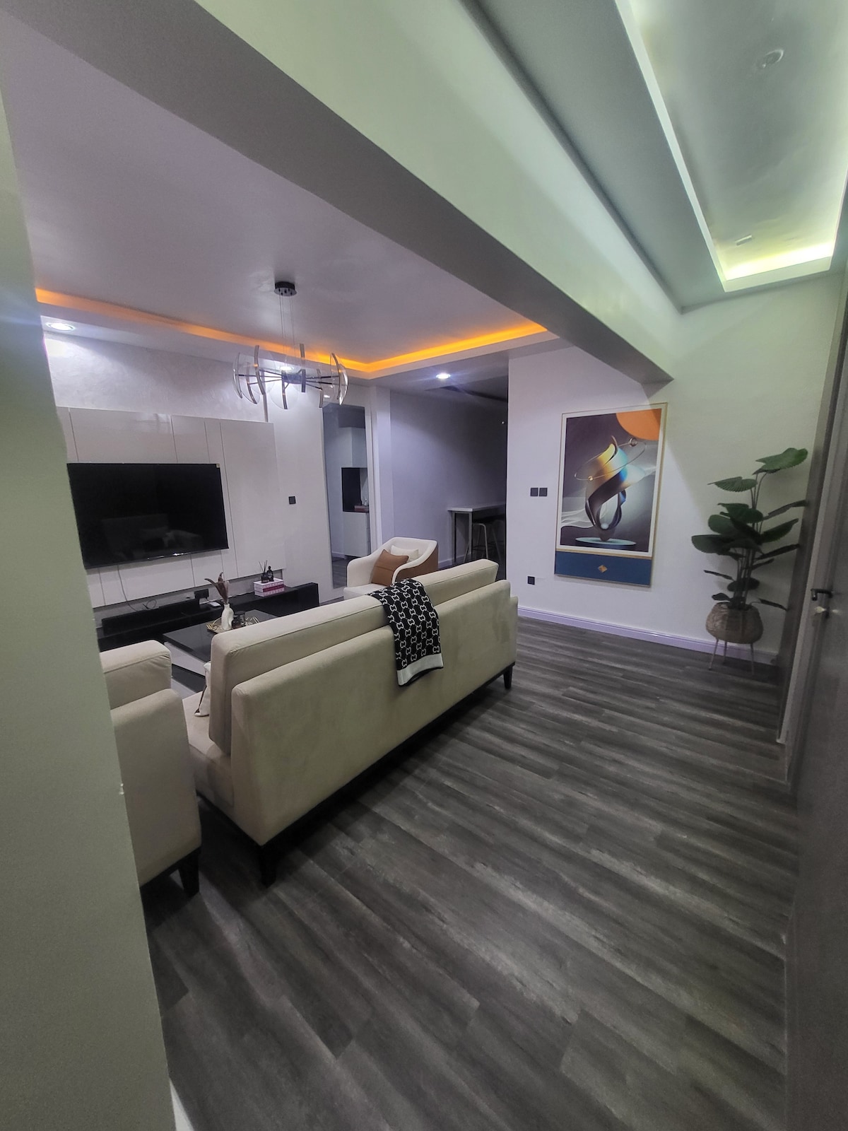 Este es nuestro gran apartamento ático de 3 dormitorios en Lekki Fase 1, que ha sido cuidadosamente diseñado para tu comodidad y ocio. Desde la entrada, nuestras puertas inteligentes te dan la bienvenida a un espacio que irradia calidez, serenidad y hospitalidad. Disfruta de las habitaciones totalmente equipadas y de la cocina que atiende todas tus necesidades. Está cerca de excelentes restaurantes y bares. Los huéspedes tienen acceso a un supermercado.