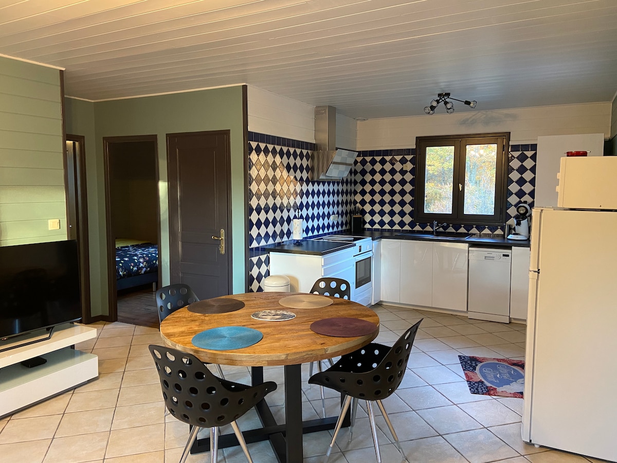 Este alojamiento tranquilo ofrece una estancia relajante para toda la familia junto a su pequeño estanque. ¡Ideal para actividades al aire libre! Cocina equipada, fibra, TV conectada, ropa de cama nueva, sofá grande, lavadora disponible. Sótano si desea proteger su coche. Servicios a menos de 10 minutos en coche.