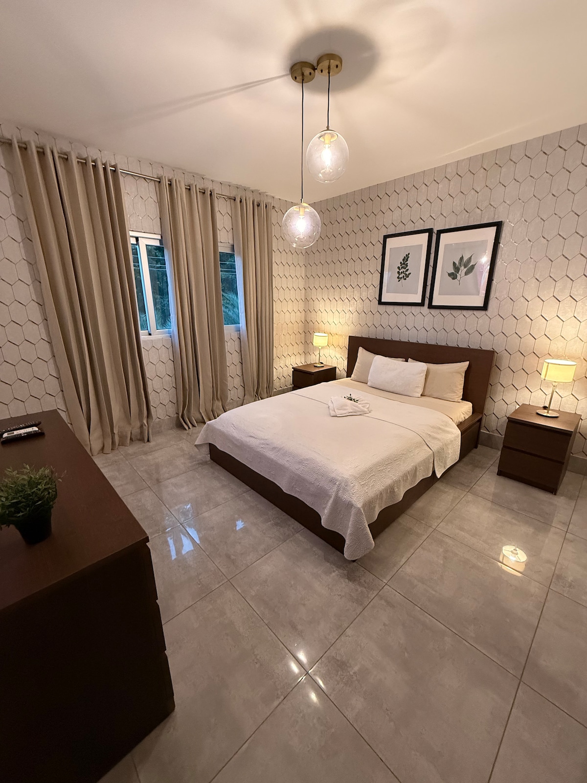 Come and enjoy this beautiful 1 Bedroom Apartment.gated complex with 24/7 security jogging track Gym small lake swimming pool fast wifi airconditioner. Hot water inverter.a balcony to relax at night 2 tv's Netflix ready, washing machine with dryer safe box coffee maker blender microwave toaster. Stationary bike workstation perfect place to work from home and be on vacation at the same time.