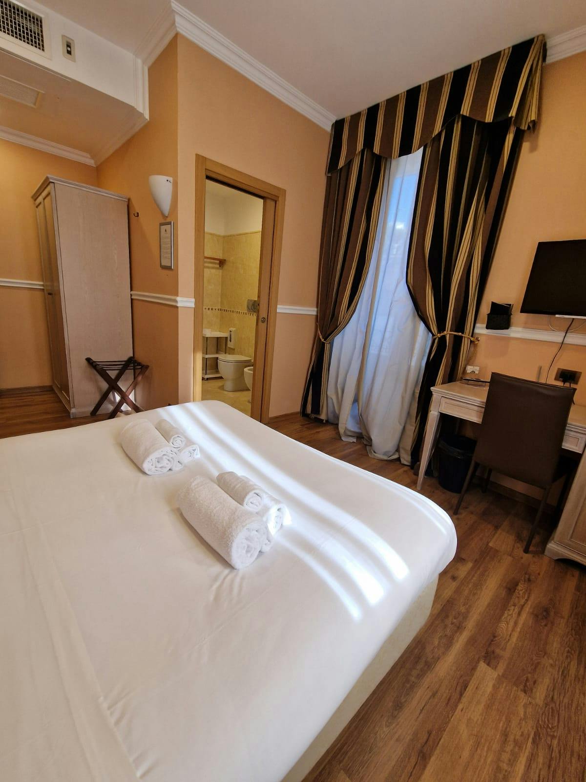 A pocos pasos del distrito EUR de Roma y cerca del metro, el American Palace Hotel ofrece elegantes habitaciones dobles con desayuno incluido. Cada habitación cuenta con una cama tamaño queen o dos camas individuales, aire acondicionado, TV LCD, wifi, minibar, caja fuerte y escritorio. El baño privado incluye una ducha a ras de suelo, inodoro, bidé y secador de pelo. Nota: las habitaciones están insonorizadas para que disfrutes de una estancia tranquila y el hotel promueve la sostenibilidad con comodidades ecológicas y dispensadores de artículos de tocador rellenables.