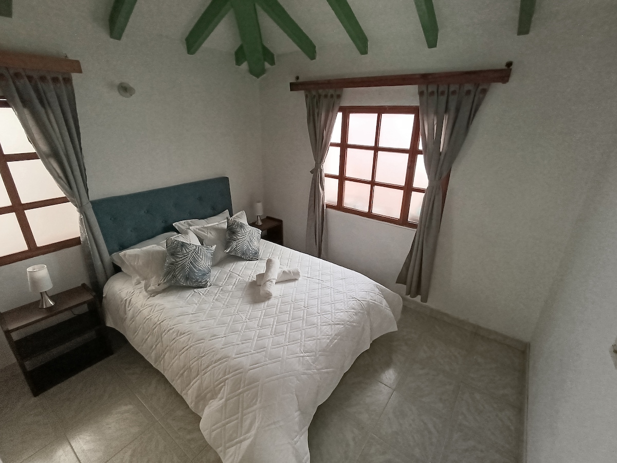 Diviértete con toda la familia en este alojamiento con estilo. A pocos pasos de la Plaza Mayor de Villa de Leyva. Disfruta de tranquilidad y confort en este exclusivo lugar. Cuenta con dos habitaciones totalmente privadas, baño con agua caliente, cocina con dotación y Sala Comedor. WiFi - TV por cable. Este alojamiento es de índole familiar. Sólo se aceptan grupos familiares, no de amigos.