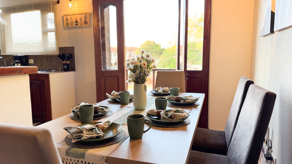 Espectacular apartamento equipado con increíbles detalles de buen gusto. Lugar con ubicación inigualable en Villa de Leyva. A pocos pasos de la Plaza Mayor, está cerca de todos lo puntos de interés como museos, restaurantes y parques. El lugar está impecable. Cuenta con TV, WiFi, 2 baños con agua caliente. Tiene un balcón hermoso para disfruta bellas vistas. El lugar tranquilo para descansar. Este alojamiento es de índole familiar. Solo se aceptan grupos familiares.