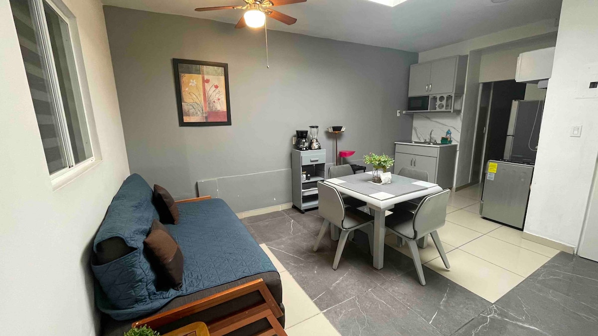 Cómodo Studio con servicios y amenidades necesarias para que disfrute de una estancia agradable. Fácil acceso a vías principales como Blvd. Casablanca, Blvd. 2000, centros comerciales y tiendas de conveniencia.