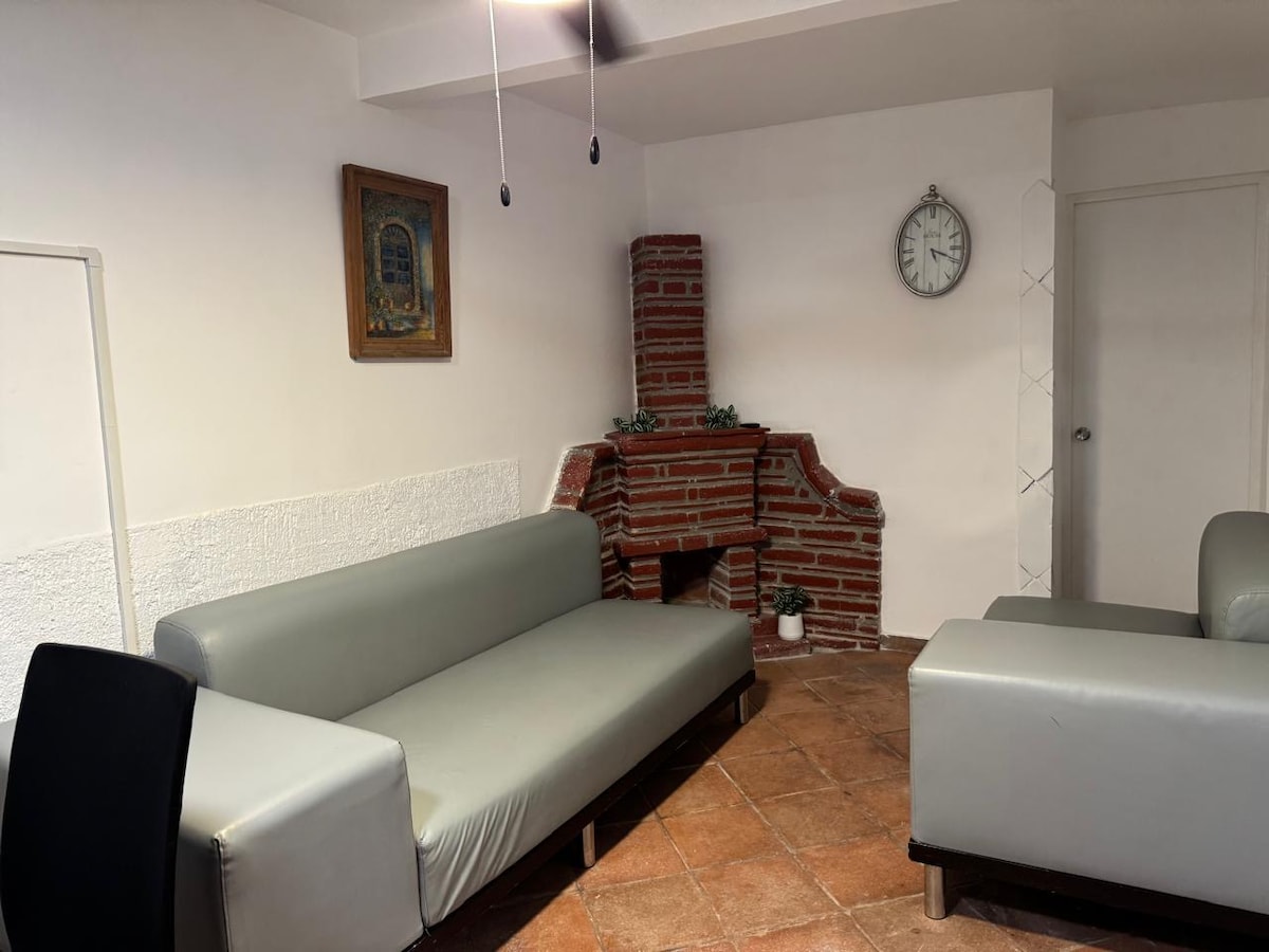 Tu casa fuera de casa, departamento ubicado en el centro de Tecate a un min. caminando del parque Miguel Hidalgo. Una cama queen, una cama individual y un fotón que se convierte en cama. AC y calefacción en recamara. WIFI, secadora de cabello, televisión inteligente, librero, café y básicos de cocina. Todos los servicios; cafés, restaurantes, tiendas, Iglesia y el parque a metros de distancia. Disfruta de las comodidades de casa, mucha luz natural, cocina completa, sala y comedor.