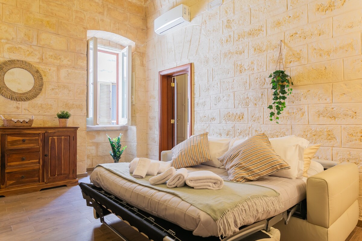 Construido entre los años 1300 y 1400, un loft de piedra con vistas al mar Adriático. Este edificio se utilizó por primera vez una casa de cañones y a lo largo de los años siguientes sirvió como almacén, una fosa de carbón y un taller de un renombrado pintor local. Hoy en día, nuestra familia se compromete a revivir este edificio y su historia, ofreciendo a los huéspedes una estancia única y cómoda en el corazón de Apulia.