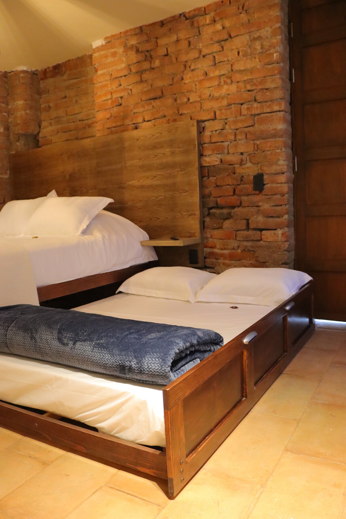 Habitación con dos camas matrimoniales, baño completo, televisión por cable, estacionamiento e Internet gratuito. Forma parte de un pequeño complejo integrado por cuatro habitaciones. Las zonas comunes para huéspedes son estacionamiento, salas en recepción y una bella terraza, en la cual podrás tomar fotos espectaculares . La propiedad tiene excelente vista frontal hacia la Peña de Bernal. En nuestro espacio te sentirás relajado y en armonía con el entorno.