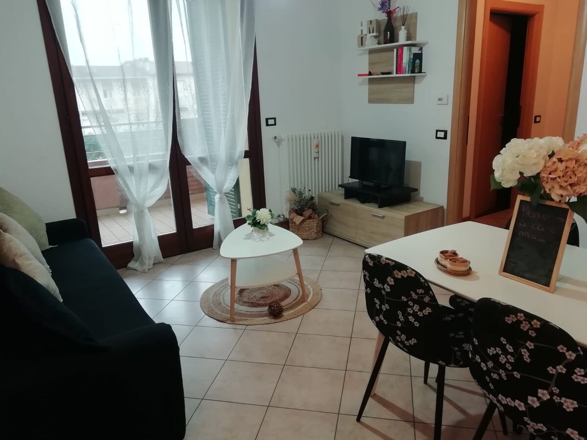 Alquilamos un apartamento en la planta baja de una casa céntrica en Imola. El apartamento tiene 2 dormitorios con 3 camas, que pueden alojar hasta 4 huéspedes . tiene una pequeña cocina, una sala de estar, un baño y un pequeño jardín agradable justo delante de la entrada principal de la propiedad. el apartamento es muy céntrico y está bien ubicado: - 5 minutos a pie(500 m) --> centro de la ciudad - 20 min (2 km) --> Autódromo E. Ferrari (circuito de la Fórmula 1) - 20 minutos (2 km) --> estación de tren y autobús