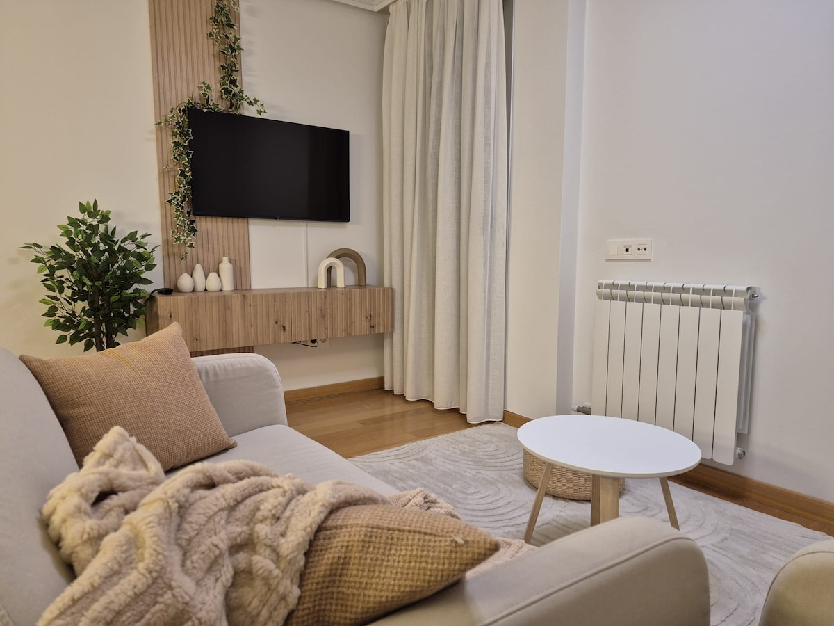 El apartamento dispone de un dormitorio con cama de matrimonio (convertible en 2 camas individuales), un amplio vestidor abierto y un pequeño balcón. Tiene una moderna cocina completamente equipada abierta al salón que cuenta con sofá (convertible en cama) y TV. El baño es amplio y se encuentra totalmente equipado. Está ubicado a unos 10 min a pie de la catedral y el Barrio Húmedo. En los alrededores hay todo tipo de servicios y posibilidad de aparcamiento gratuito en la calle.