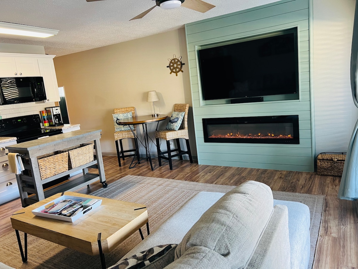 «¡Esto es todo!» Vista panorámica del canal principal de 3 millones de dólares, entrada a nivel, dos televisores Roku de 58 pulgadas, cama tamaño king, chimenea eléctrica, terraza cubierta, plancha eléctrica Blackstone, piscina de agua salada, muebles de terraza, tumbona Papasan, café Keurig, wifi de 400 Mbps... ¡y una hamaca! El refugio perfecto para parejas, pero lo suficientemente grande para una familia pequeña... ¡Nos encantaría hospedarte en Lakescape Romantic Retreat! Creemos que nuestro apartamento cumple con tantos requisitos que dirás, tal como lo hicimos nosotros: «¡Esto es todo!»