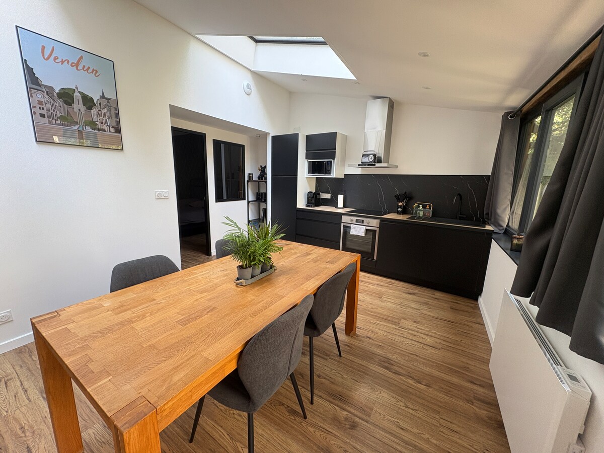 Encantadora casa individual de 120 M2 totalmente equipada, rodeada de un jardín cerrado con hermosos árboles y terraza. Situada a 5 minutos de Verdún en una urbanización tranquila y a 1 hora de París en TGV. - Visita imprescindible al centro histórico de Verdún con su catedral, ciudadela subterránea, monumentos... - Lugares de memoria (campos de batalla, memorial de Douaumont, espectáculo de las llamas a la luz). - Cerca de la naturaleza: el lago de la Madine, el viento de los bosques, las costas del Mosa...