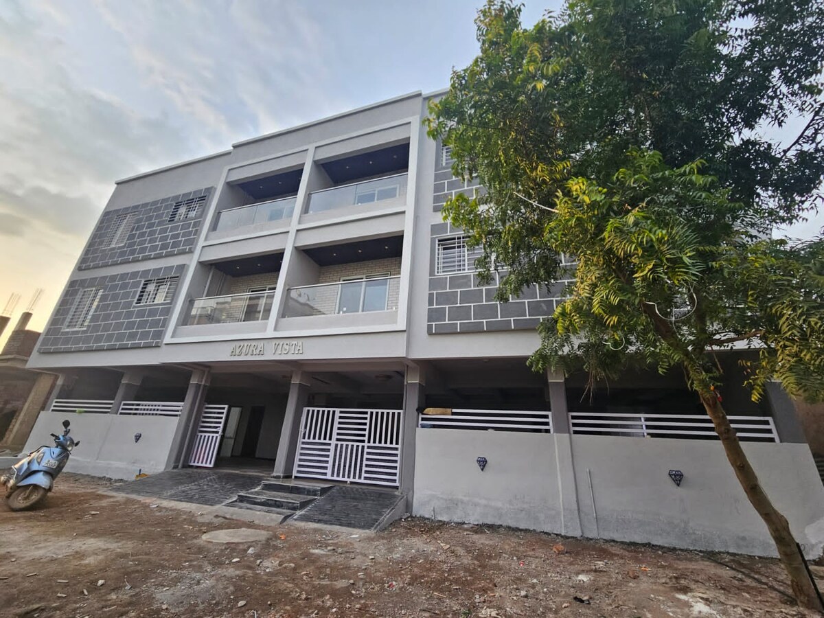 Welcome to our brand-new, spacious 2-BHK apartment, ideal for families and couples seeking comfort and convenience. The bedrooms have queen size beds with orthopedic mattresses and AC for a restful night's sleep. Relax in the large living room with a 43-inch Smart TV, lightning-fast WiFi and a dedicated dining area. Comes with two super clean bathrooms stocked with bath essentials. The fully equipped kitchen includes high-quality appliances and crockery for your culinary adventures!