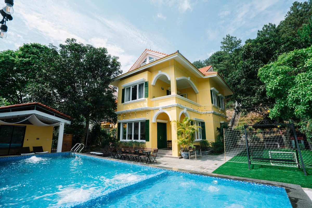 Villa cách trung tâm Hà Nội 35km, cách sân bay quốc tế Nội Bài chỉ 13km. ( Được đem thú cưng ) 👉🏻 Free Pickleball, bể bơi 👉🏻 Hỗ trợ đặt xe đưa đón 👉🏻 Villa hỗ trợ đặt đồ ăn theo menu có sẵn, trang trí sự kiện, sinh nhật,… ☘️ Gần villa có quán cafe view núi siêu chill 🌸Bao quanh là một màu xanh ngát cỏ cây hoa lá và đồi thông lãng mạn với không gian rộng lớn 10.000 m2. Không khí vô cùng trong lành và sạch sẽ. Bạn sẽ thích thú và hài lòng về không gian, dịch vụ chu đáo, nhiệt tình .