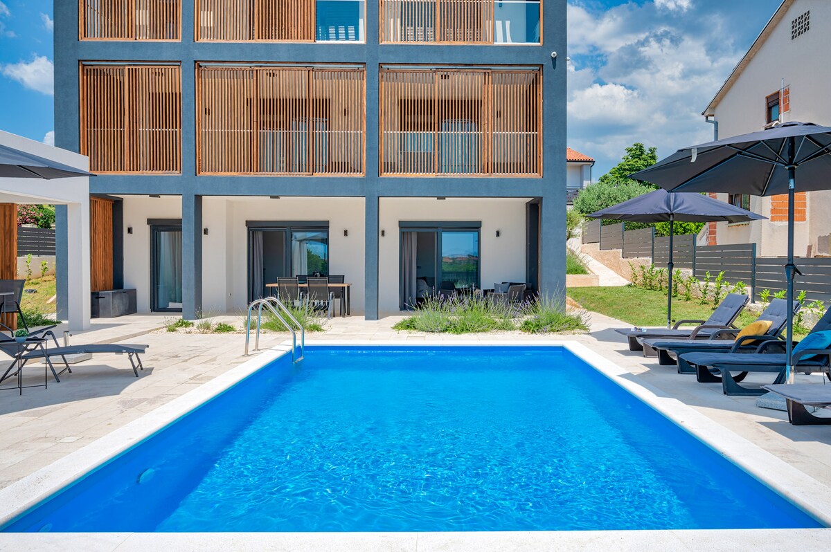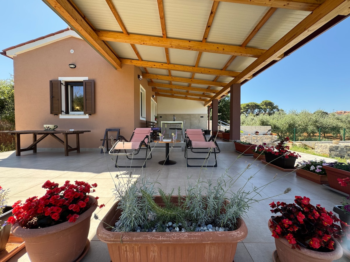 Casa de vacaciones moderna y totalmente renovada y mejorada a partir de abril de 2024. Apta para un máximo de 4 personas. Una casa de un dormitorio y un baño con cocina espaciosa y sala de estar. Sofá adicional que se puede estirar para que quepan dos personas adultas. Piscina con características de calefacción y refrigeración recién añadidas. Sauna adicional con vistas al jardín de olivos. El uso gratuito de bicicletas, barbacoa y bádminton son algunas de las opciones para disfrutar en la casa.