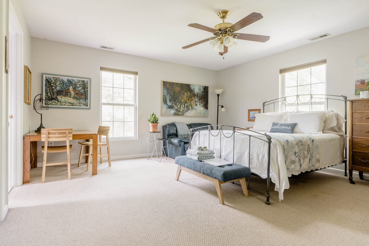 Disfruta de la vida playera, el senderismo y el ciclismo cerca de la bahía de Chesapeake en un espacioso estudio totalmente amueblado con entrada privada y baño privado en un barrio muy seguro y tranquilo con una plaza de aparcamiento dedicada también. A cinco minutos a pie de la playa y del Parque Estatal First Landing, con rutas de senderismo, ciclismo y carreras, restaurantes de propiedad local, bares, tiendas, cervecerías, tiendas de comestibles, farmacia, mercado de agricultores y estudio de yoga.