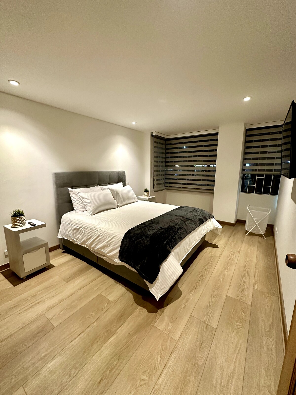 Apartamento de Lujo, ubicada en el mejor sector de Bogotá, en un nuevo y moderno edificio, disfruta del barrio mas cosmopolita que tiene Bogotá, a tan solo dos cuadras de la zona de restaurantes de Lujo, la mejor diversión nocturna, los mejores parques para respirar aire puro, centros comerciales y reconocidos centros de cirugía estética y medicina especializada. Ven y disfruta solo, en pareja o familia este espectacular Apto¡ Aprovecha los descuentos por semana¡