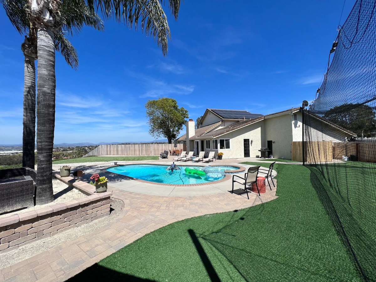LEGOLAND y las mejores PLAYAS cercanas. Piscina, spa, cancha de tenis, pickleball, baloncesto, sala de juegos, ping pong, pesca, piragüismo en un estanque de 1/2 acre con peces, patos y aves, barbacoa, chimenea, todo para tu uso privado EXCLUSIVO. PARAÍSO TROPICAL único y cómodo para RELAJARSE y DIVERTIRSE en el condado norteño de SAN DIEGO. Muchas atracciones, cervecerías ARTESANALES y cocina. ***Hay 3 residencias privadas en la propiedad de 2,5 acres. Tu residencia es tu propia casa, todo es para tu uso privado.