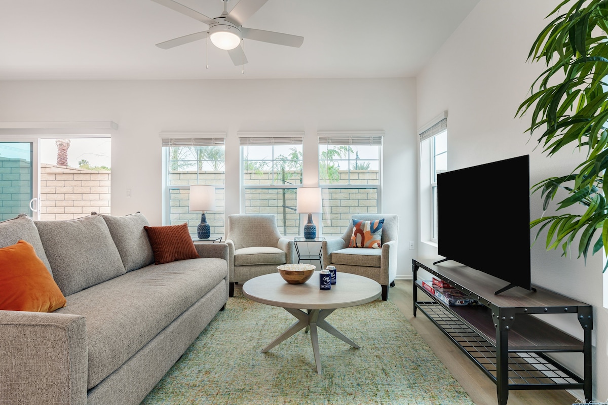 La mejor experiencia de alquiler de casas vacacionales en Signature PGA West. Ubicado enfrente de The Stadium Course y a menos de 4 millas del recinto ferial del Festival de Música de Coachella. Esta hermosa propiedad es lujo habitable. La pared de vidrio deslizante del suelo al techo difumina las líneas entre la vida interior y exterior, al más puro estilo del desierto. ¡El patio trasero estilo resort incluye piscina de agua salada, jacuzzi, solárium con tumbonas, sistema de niebla, chimenea, barbacoa y cargador de vehículos eléctricos!