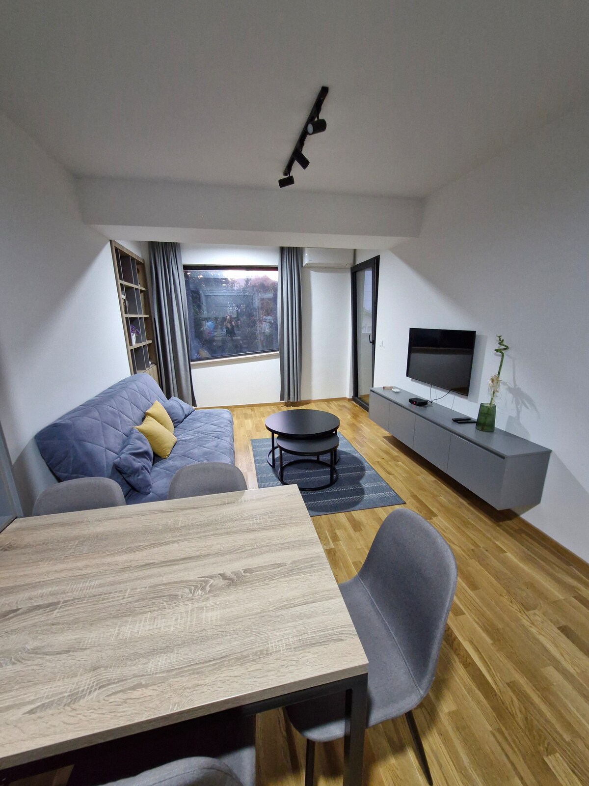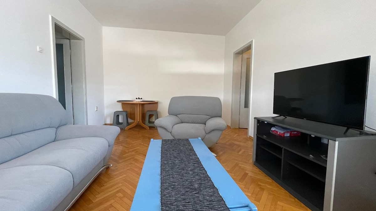 Disfruta de una experiencia de lujo en este céntrico alojamiento. Este es un apartamento NUEVO de 60 m2 a 5 minutos a pie del parque de la ciudad (estadio) y de la plaza principal. La mejor ubicación posible, muy cerca de las encantadoras calles de Debar Maalo con muchos bares y restaurantes. El apartamento tiene 1 dormitorio con cama tamaño queen y una sala de estar con un cómodo sofá cama + cama extraíble. También hay 2 balcones en ambas habitaciones, uno con vistas a la montaña Vodno. Puedes utilizarlo para tomar un café o almorzar.