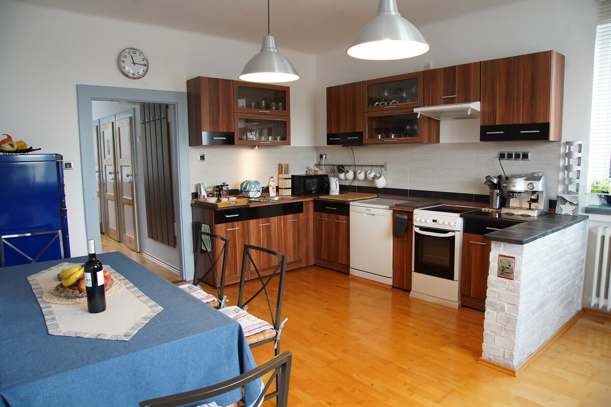 Disfruta de lo mejor de Praga desde nuestro acogedor, espacioso y tranquilo apartamento Ubicado en un barrio tranquilo pero convenientemente conectado con el vibrante centro de la ciudad de Praga, nuestro apartamento ofrece el equilibrio perfecto de comodidad y accesibilidad. Llegue al centro de la ciudad en pocos minutos en automóvil o transporte público: la estación de metro más cercana está a solo 10 minutos a pie o a 3 minutos en autobús. Las persianas exteriores están en su lugar, lo que permite la duración diaria de la siesta que prefieras.
