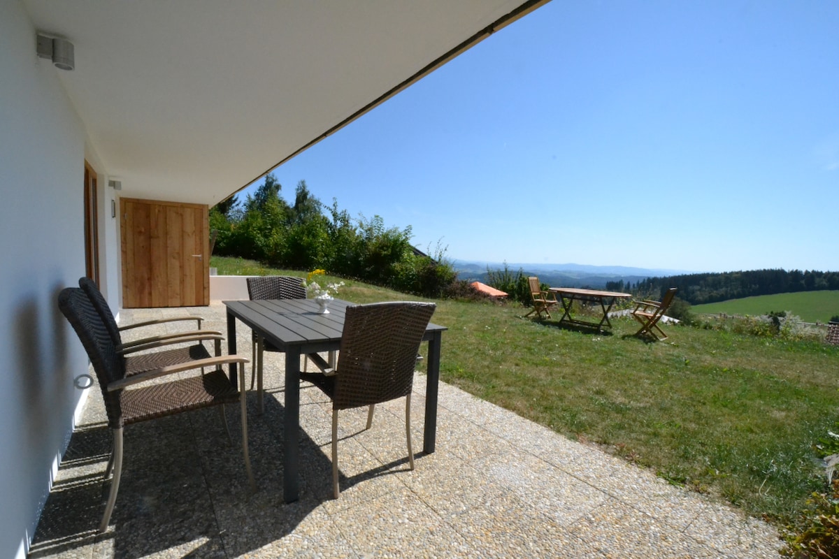 Moderno apartamento con jardín reformado en una ubicación muy tranquila con una vista fantástica sobre las montañas del bosque bávaro, así como sobre los Alpes cuando el foehn está soplando. La terraza y el jardín están disponibles para uso exclusivo. Los anfitriones no estarán disponibles durante tu estadía. Disfruta del lujo de ser el único huésped para ocupar la casa y al jardín por tu cuenta.