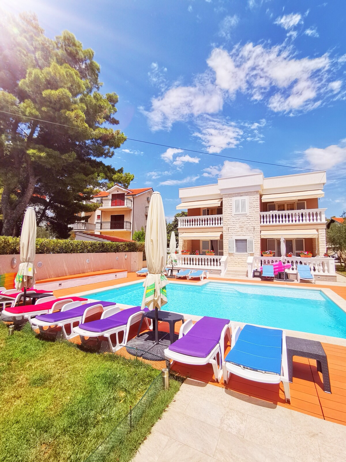Este lujoso apartamento de dos dormitorios con terraza con vistas a la piscina está en la hermosa casa con piscina, parrilla y solárium privada en el techo de la casa. Se adapta cómodamente a 4 (más 2 en el sofá). Ofrece un alojamiento agradable en la zona tranquila de Vodice. La casa tiene estacionamiento seguro y la playa está a poca distancia a pie.