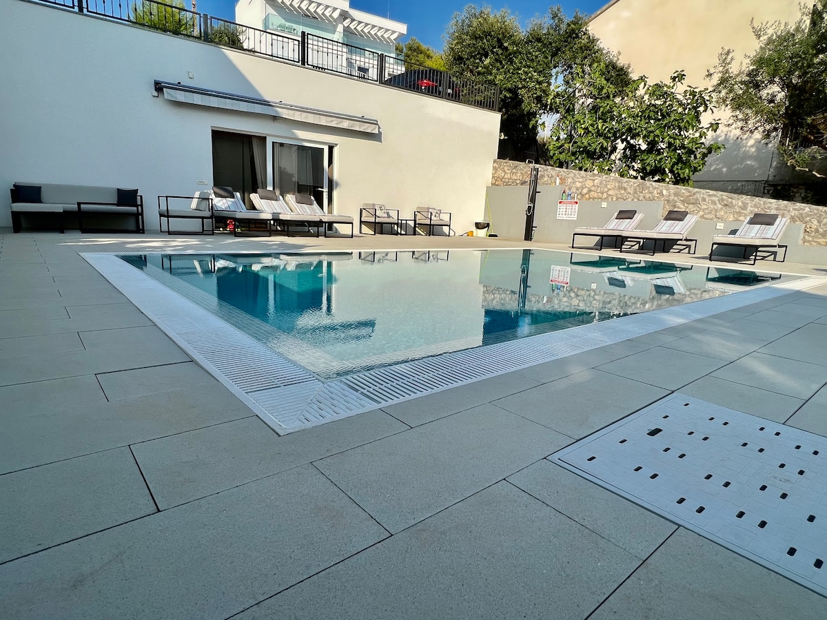 Apartamento Villa ZEN Trogir Trogir - piscina infinita climatizada (20 de abril de 2026-31 de octubre de 2026) Aire acondicionado, Google TV, lavadora, detergentes, gran terraza privada de 30 m2, 1 plaza de aparcamiento con cargador para vehículos eléctricos, tipo 2 disponible, piscina privada para 2 apartamentos (7 huéspedes como máximo) en Villa ZEN. Cocina de tamaño completo: lavadora, fogones, horno, nevera, calefacción por suelo radiante. Sofá de salón, 220*300 cm. Habitación A 160*200 (A\C), la habitación B tiene 2 camas 90*200 (A\C) que se pueden unir. El barrio es tranquilo, a solo 150 metros de la playa. Eres bienvenido :)