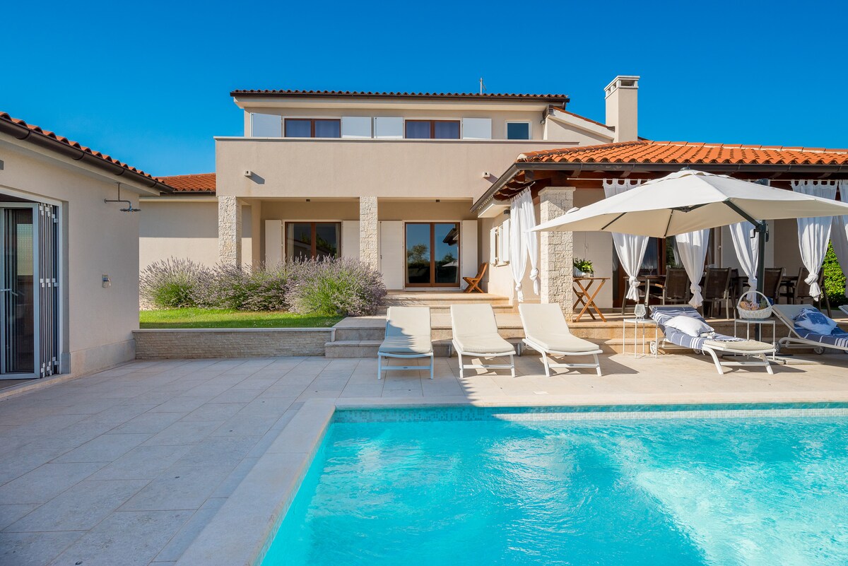 Esta lujosa casa de vacaciones combina el confort moderno con el auténtico encanto de Istria, a poca distancia de todas las atracciones de Istria. Construida en parte con piedra tradicional, ofrece calidez y elegancia. Podrás disfrutar de 4 dormitorios con baño, zona de bienestar con sauna y bañera de hidromasaje, una piscina atractiva, cocina al aire libre con parrilla y una elegante zona de estar para relajarte, durante todo el año. Rodeado de vegetación autóctona, es un refugio perfecto para quienes buscan lujo, tradición y privacidad en un entorno tranquilo.