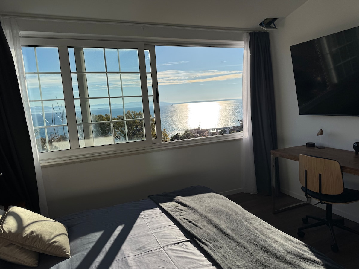 Disfruta de la elegancia de una época pasada mientras te hospedas en este elegante apartamento en una villa junto al mar mientras te relajas junto al mar en un encantador edificio de más de 100 años. El espacio cuenta con suelos de madera en espiga, techos altos y detalles antiguos para una sensación encantadora. Situado a solo 300 metros del mar, se encuentra a tres minutos a pie del agua. Da un paseo temprano por la mañana y disfruta del paseo marítimo Lungomare. Disfruta de un café en el balcón con vistas panorámicas a la costa de la bahía de Kvarner.