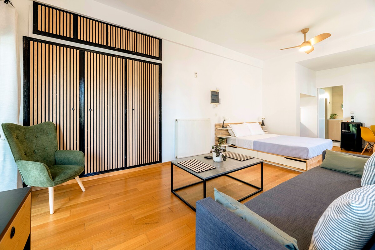 Nuestro estudio boutique (24 metros cuadrados) en el cuarto piso está perfectamente ubicado junto al mar en la prestigiosa zona de Voula, con una vista increíble sobre el golfo Sarónico, ¡incluso desde la comodidad de tu cama! Su ubicación ideal te da la oportunidad de disfrutar de una variedad de lugares de playa y también te proporciona un acceso fácil y rápido al transporte público. ¡Totalmente renovado en 2019, tiene como objetivo hacer que tu estancia sea muy cómoda y enriquecer tu experiencia de viaje! Ideal para parejas, amigos o viajeros de negocios.