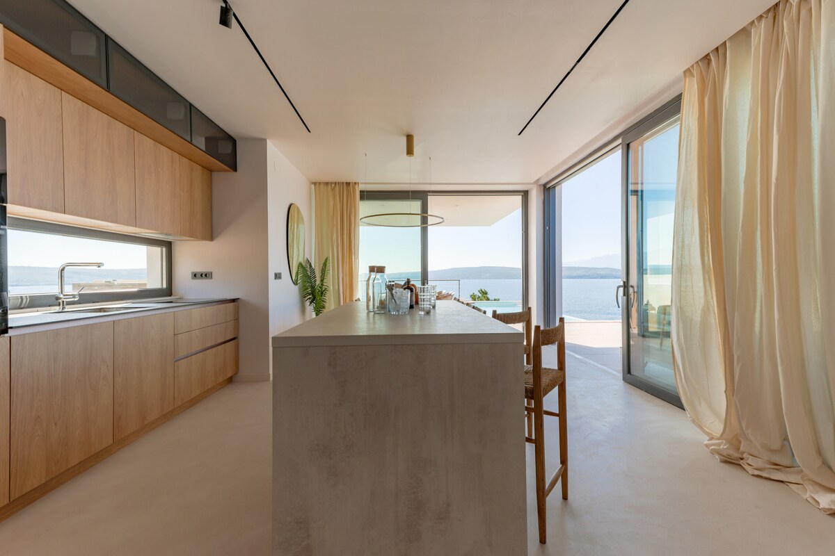 El edificio está situado justo al lado de la costa, en la hermosa bahía turquesa y dinámica de Kosirina. Ofrece privacidad, está rodeado de vegetación y flores a la sombra de un olivo centenario. Consta de salón, cocina, dormitorio y baño. En la habitación hay dos camas francesas (galería). La sala de estar está acristalada con paredes móviles y tiene vistas al mar y a toda la bahía. La terraza está cubierta y los huéspedes tienen a su disposición 2 tumbonas, 2 columpios, una tabla de surf, una parrilla, una ducha solar al aire libre...