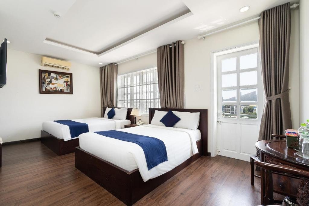 Ubicado justo en el centro turístico más concurrido de Vung Tau, solo te lleva un paseo de 3 minutos para llegar a Back Beach. En un radio de 200 metros de la zona hotelera, hay una variedad de restaurantes, cafeterías y tiendas de conveniencia como Circle-K en el servicio 24/7 para su uso. Las habitaciones están decoradas con muebles de madera, ducha, secador de pelo, hervidor de agua, TV por cable, aire libre de ruido y mininevera. Billete de avión gratuito y asistencia para reservar un autobús de larga distancia. De cortesía: agua potable.