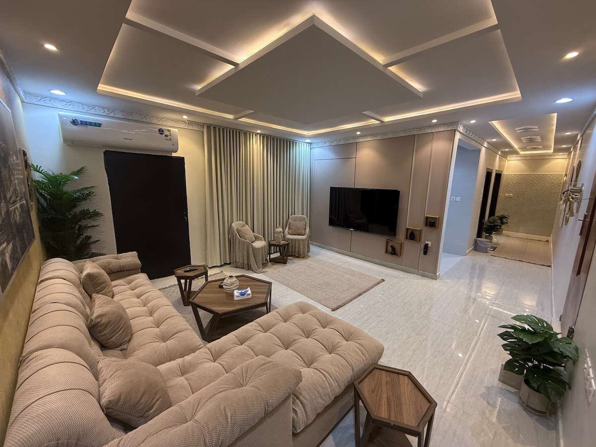 Cómoda sala de estar: el lujoso apartamento de 1 dormitorio en Riad ofrece un amplio diseño con 1 dormitorio, sala de estar y 1 baño. Incluye aire acondicionado, cocina pequeña, lavadora y cocina totalmente equipada. Servicios esenciales: disfruta de wifi y aparcamiento gratuitos en el hotel. El apartamento cuenta con TV, lo que garantiza una estancia conveniente. Ubicación privilegiada: ubicación céntrica con zona bien atendida. A 20 millas del aeropuerto KKIA, la propiedad está cerca de atracciones como King Abdullah Park y Al Faisaliah Tower.