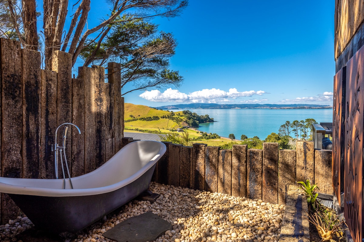 * OFERTA DE INVIERNO: quédate 2 noches o más y obtén una noche gratis para estadías realizadas entre el 1 de mayo y el 30 de septiembre de 2025 (excluyendo los fines de semana festivos)** Excelente casa de lujo con vistas espectaculares y una pista directamente a la playa de Onetangi. Pah View House tiene una de las ubicaciones prémium de Waiheke y ofrece un amplio alojamiento de lujo.