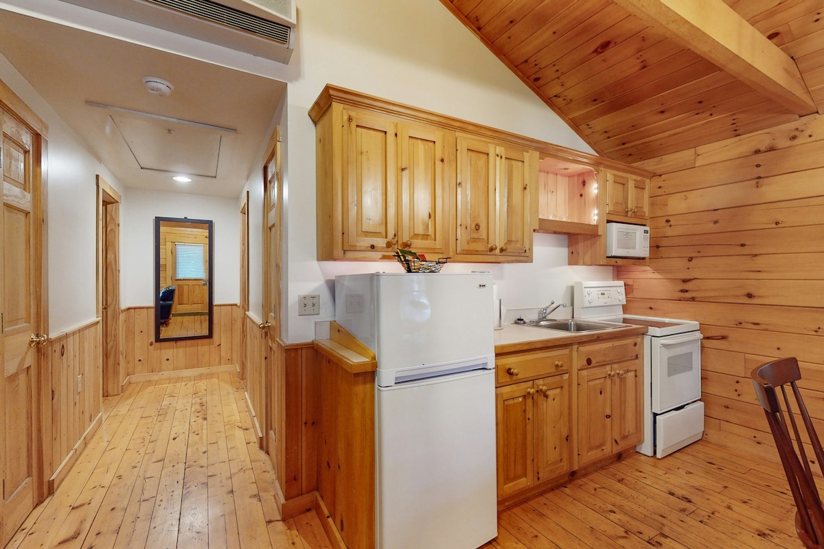 Cabaña tipo estudio con chimenea, cocina americana y aire acondicionado