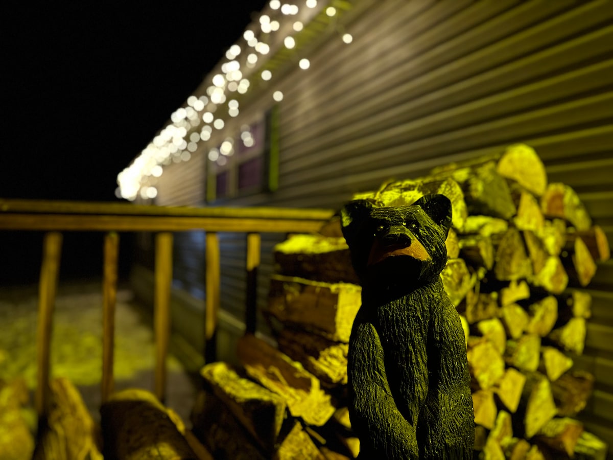 Planta baja completa de una casa con una cama doble. Hay un bonito baño con ducha. Hay microondas, café, sillón de masaje, parrilla al aire libre y mesa de pícnic. Internet y cable proporcionados con Fire Stick para la televisión. La chimenea y el jacuzzi se comparten con otros huéspedes. Se admiten y son bienvenidos hasta tres perros o mascotas de cualquier tamaño. Los tres acres tienen un lugar encantador para que corran y se han rociado para eliminar garrapatas y mosquitos. Nota: reemplazo de llave 30 USD si se pierde o se roba.