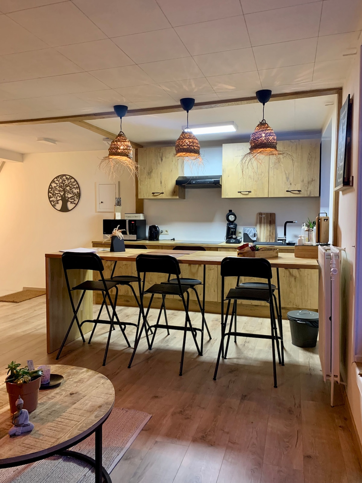 Luminoso pajar renovado en 2021, en el primer piso de nuestras oficinas, con hermosas vistas a nuestro huerto y huerta. Acceso privado a un estudio de 40 m2 (con 1 sofá cama, 1 mesa de comedor+nevera, microondas, café, té, agua, 1 escritorio, 1 cuarto de baño con ducha+WC), 🅿️gratuito en el patio y acceso privado a su encantador jardín con sillas, mesa y tumbona. Opcional de pago: recarga eléctrica, bicicletas, prado vallado con box y agua para un máximo de 2 caballos. Gracias por su confianza, esperamos poder darle la bienvenida. L&N