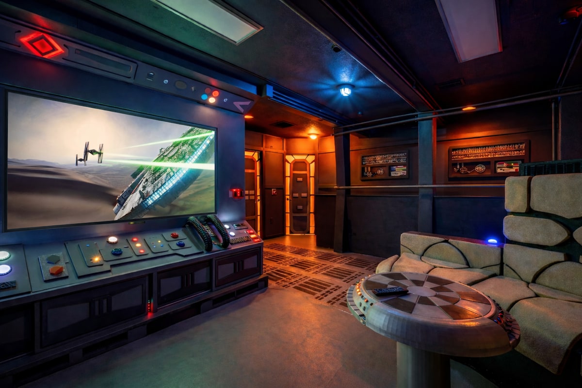 🚀 Custom Millennium Falcon cargo bay game loft — hand built & painted 🏊 Heated pool included — no fee 🍖 BBQ grill, gas and utensils included — no rental fee 🐾 Save money and pack lighter — pets stay free, pet gear and baby gear all provided A recent guest said "Everything you can think of for the perfect stay — pool was heated and clean, close to everything but secluded enough for a peaceful retreat. We will definitely be back!!" The Disney home base your family won't want to leave.