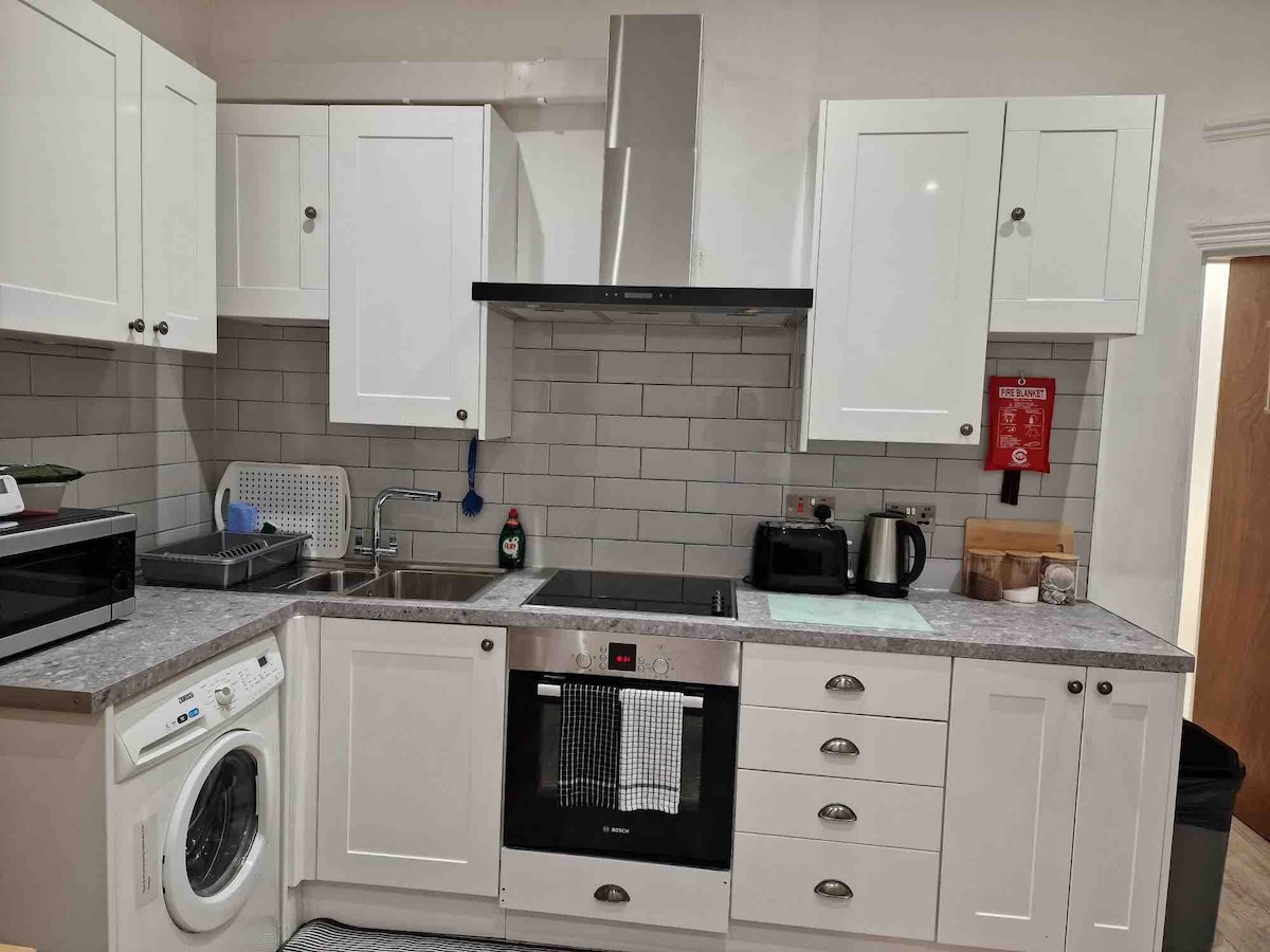 Relájate en este espacioso apartamento tranquilo y elegante para tu uso exclusivo (sin COMPARTIR) Cocina totalmente funcional con hervidor de agua, tostadora, lavadora, freidora de aire y microondas. En una ubicación perfecta con muchas conexiones de transporte que ofrecen fácil acceso al centro de Londres. Nota: Para todos los huéspedes que pagan el cargo por huéspedes adicionales, ofrecemos un dormitorio adicional con una cama individual y un armario.