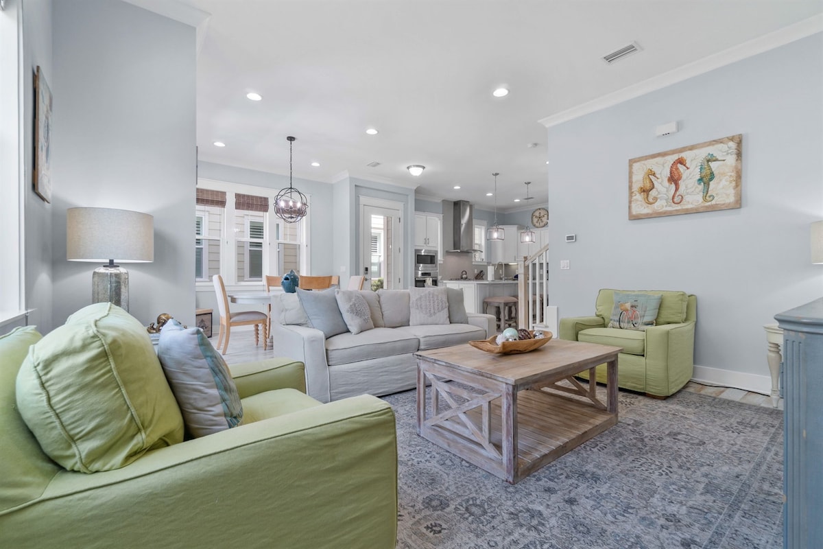 Esta casa adosada de lujo bellamente decorada está perfectamente ubicada entre Seaside y Rosemary Beach en la popular comunidad de Prominence en 30A. Esta casa de playa cuenta con todos los servicios que necesitas, incluida una cocina totalmente equipada, un carrito de golf de 6 plazas, 4 bicicletas y piscinas comunitarias de estilo resort. Cerca de los mejores restaurantes y tiendas, incluido el popular Big Chill, al otro lado de la calle. Tenemos todo lo que necesitas: tumbonas, toallas, nevera, juguetes, sombrilla y mucho más.