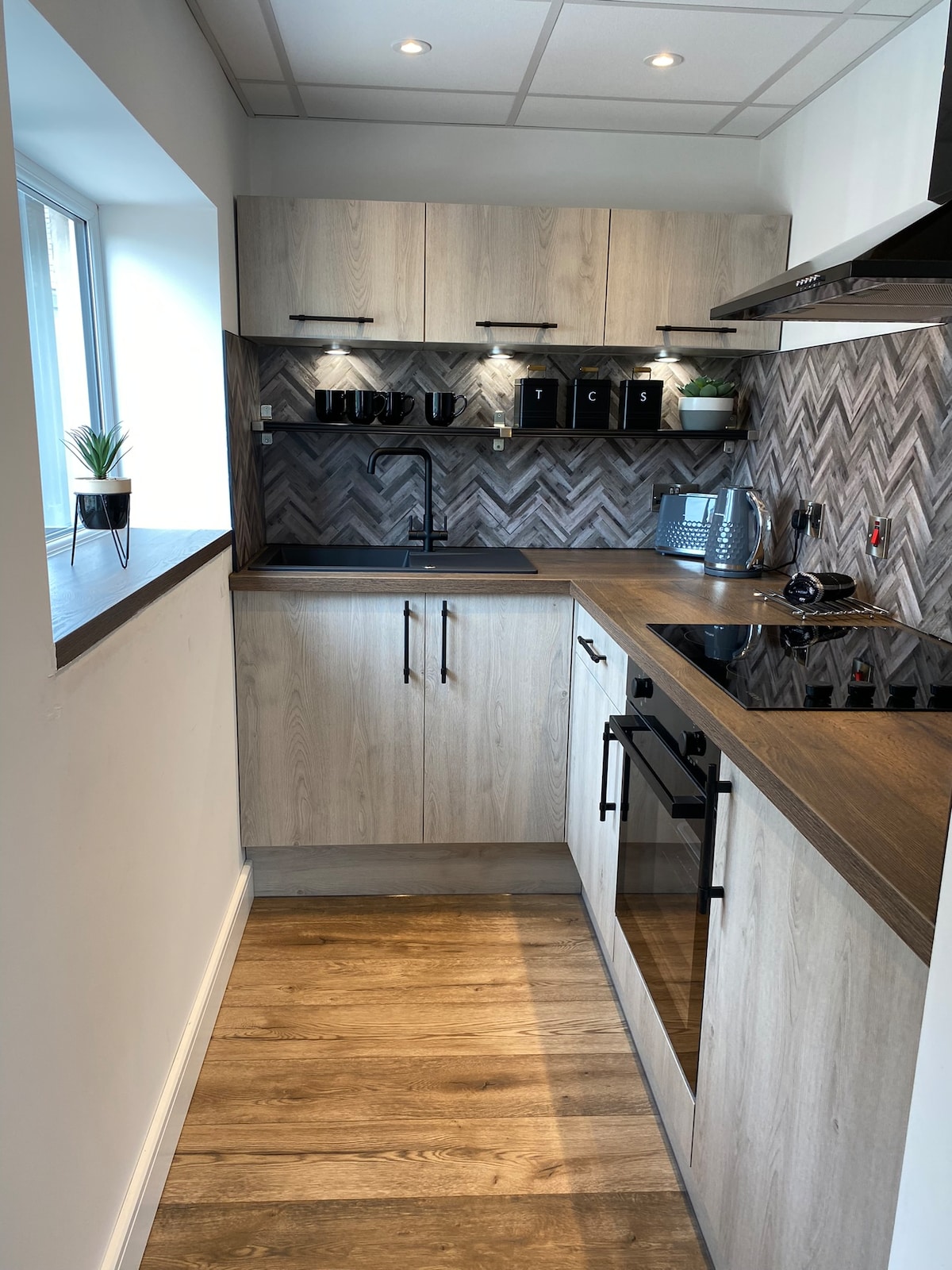 Our new stunning studio apartment in Preston City centre has a king size bed . A comfortable seating area with a large screen smart TV. The kitchen has a fridge, oven, hob,kettle,toaster and microwave. We provide complementary tea,coffee sugar cereal and fresh milk on arrival. A smart shower room with toilet and wash basin and illuminated mirror. Just 20 yards from the new ANIMATE entertainment complex.Reserved parking next to the apartment is included