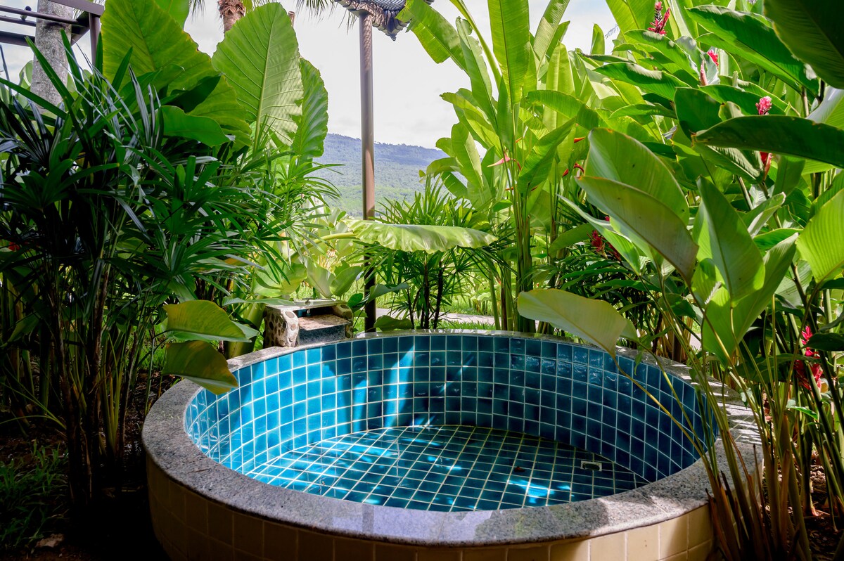 Come relax with us at the perfect sanctuary getaway centered in a serene natural setting surrounded by lush greenery offers tranquility and peaceful place to stay. FULL amenities including kitchen, swimming pool, laundry, karaoke, and outdoor Hot Tub for those seeking a refined extraordinary retreat in Khao Yai.