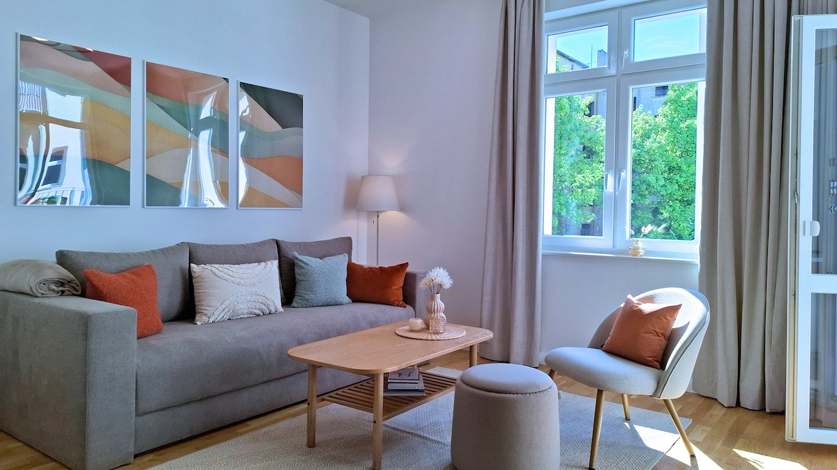 ¡Bienvenido a su elegante apartamento de época en el corazón de Magdeburgo! Este apartamento histórico, amueblado con cariño, cuenta con techos altos, grandes ventanales y mucho carácter, perfecto para cualquiera que busque algo especial. Tanto si viajas con familiares, amigos o compañeros de trabajo, este espacioso apartamento de dos dormitorios tiene capacidad para 4 personas. Gracias a su ubicación céntrica, puedes llegar fácilmente a lugares de interés, cafeterías y restaurantes locales a pie o en transporte público.