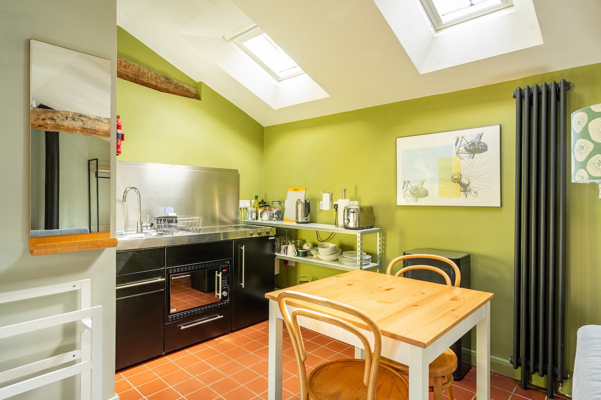 The Barn es un moderno espacio de estudio totalmente equipado que está rodeado de campo abierto. Disfruta de este romántico escondite con alguien especial. Mira Netflix en tu propia pantalla de cine. Recoge algunos productos frescos en la tienda de productos agrícolas local. Cocina una comida gourmet en tu cocina privada o cena en restaurantes y pubs. Pasa una noche haciendo una barbacoa con vistas a un amplio jardín y al campo abierto. Da un paseo por los numerosos senderos o juega al golf en uno de los tres campos cercanos.