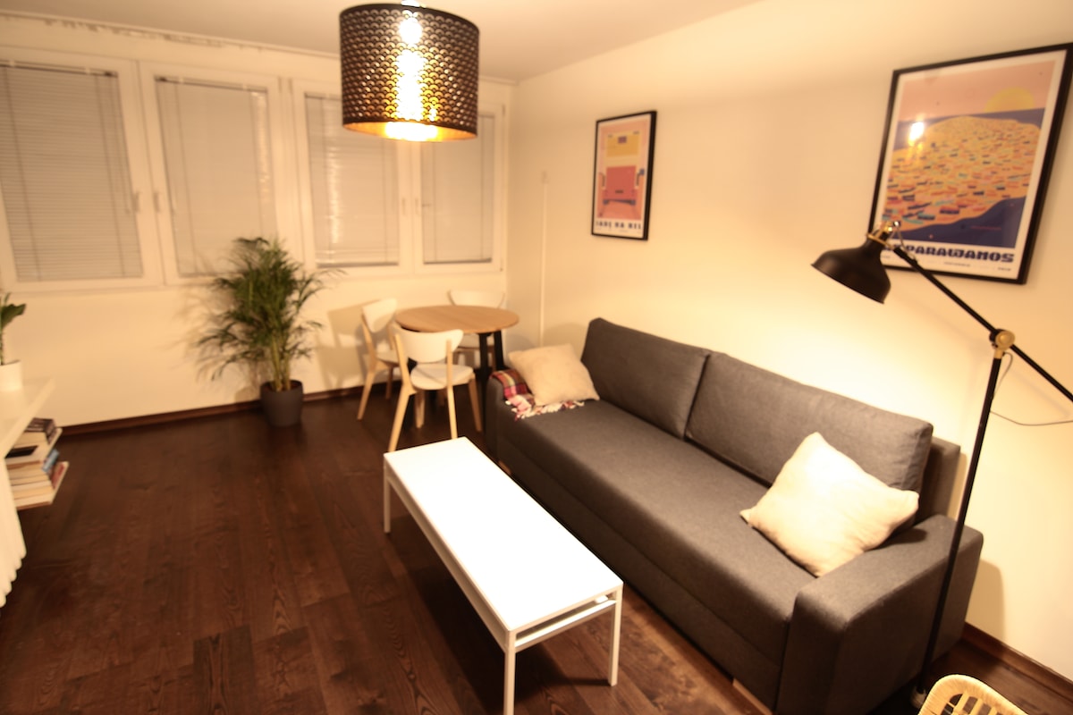 2 bedrooms one kitchen and a bathroom for up to 4 people, saska kępa is a well known Location and you can get everywhere by feet. It’s not a new flat but everything is there and you can use everything. Animals allowed and smoking please only on the balcony. Smart tv with all the fancy apps plus a big monitor in the bedroom with hdmi input. Check in is flexible depending on your needs and when the guests prior to you leave, there is a Self Check in Box too. Have fun at my cozy place.