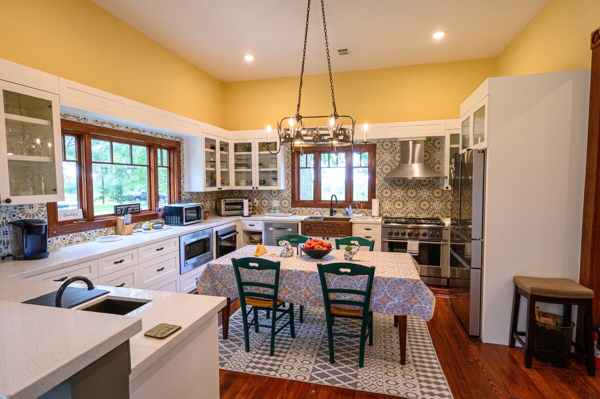 A pocos kilómetros al norte de Chappell Hill, esta casa histórica tiene una cocina de chef, dormitorios en la planta baja, cada uno con acceso al baño. Está a pocos minutos de los lugares donde se celebran las bodas. Está cerca del parque estatal Washington-on-the-Brazos, Brenham y Round Top. (Kyle Field en College Station está a 40 minutos).
