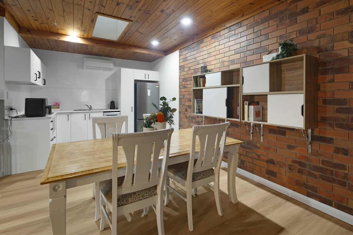 Bienvenido a «The Nook», tu serena escapada en Shailer Park. Totalmente independiente y privado, un refugio tranquilo para parejas o viajeros solitarios, a solo 30 minutos de Brisbane o de la Costa Dorada. Características: Cama king TV, wifi Microondas, placa de cocina Frigorífico grande. Baño Lavadora Aire acondicionado en el dormitorio y la sala de estar Cubierta y entorno al aire libre Lugares de interés en la zona: Centro comercial (2 min) Parque Daisy Hill Koala (5 min) 2 campos de golf públicos (a 10 minutos) Parques temáticos (20 min) Varias rutas de senderismo (5 min)