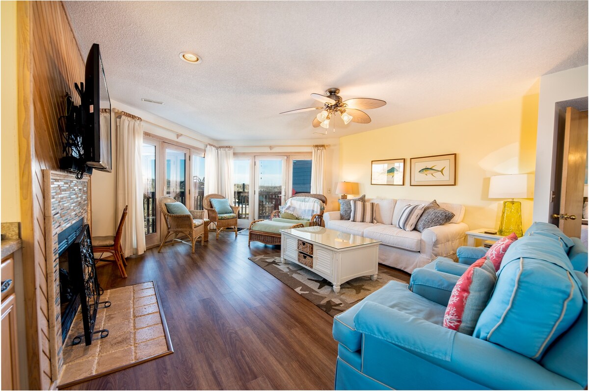 Tú y tu familia podéis disfrutar de una de las mejores vistas de los Outer Banks desde las dos terrazas de esta casa adosada bellamente decorada. Relájate y desconecta en este paraíso frente a la playa. - A 75 pasos de la playa. - Piscina comunitaria, jacuzzi, desde mediados de mayo hasta mediados de octubre. - Gimnasio y sala de juegos. - Cama tamaño king en el dormitorio principal. - Sistema de purificación de aire Halo Reme para toda la casa. - Internet de alta velocidad y TV por cable. - Cocina totalmente equipada. - Lavadora y secadora. - Bicicletas. - Tumbonas, tablas de boogie, etc.