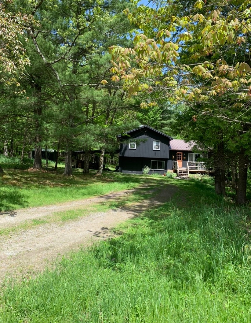 1950s rustic cabin in the woods ~880 sq ft on private road w/9 total neighbors. New kitchen, cookware, 2 bath, stocked with spices, coffee, sugar, creamer, hair care & full laundry. Window fans keeps house AC cool. Heated with wood burning stove & baseboard heat only (will be colder in fall/winter). Note: Purchased fixer in 2016 & have been fixing it up & sharing it w/folks ever since. All homes are over 110 years old & could be in process of renovations but we aren’t made aware in advance