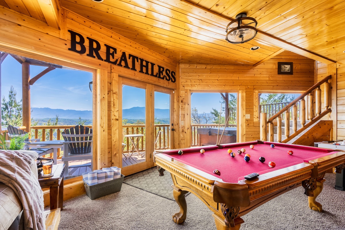 🏔Best View in the Smokies!🌄 ⭑2000 Sq Ft Log Cabin ⭑New Hot Tub ⭑3 Bed Plus Loft ⭑3 Baths ⭑Game Room ⭑3 mi.-Dollywood ⭑Wide Paved Roads ⭑Smart TVs ⭑Arcade-60+ Games ⭑Pool Table ⭑Air Hockey ⭑Shared Gym ⭑Self Check-In ⭑Washer & Dryer ⭑Community Pool ⭑3 Ensuite King Bdr (May 15-Sept 15) ⭑Bunk Bed ⭑Digital Guidebook ⭑WiFi